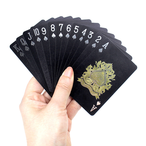 Nueva calidad de plástico PVC poker suave impermeable negro naipes chapado en oro duradero juegos de mesa de póquer personalizados