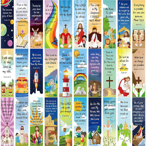 30Pcs Inspirational Christian Phim Hoạt Hình Nhà Thờ Trẻ Em Kinh Thánh Bookmark Cho Tín Hữu sùng đạo Quà Tặng