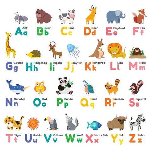 Decorazione A Buon Mercato Del Fumetto Colorato Alfabeto Animale Autoadesivo Della Parete Per I Bambini